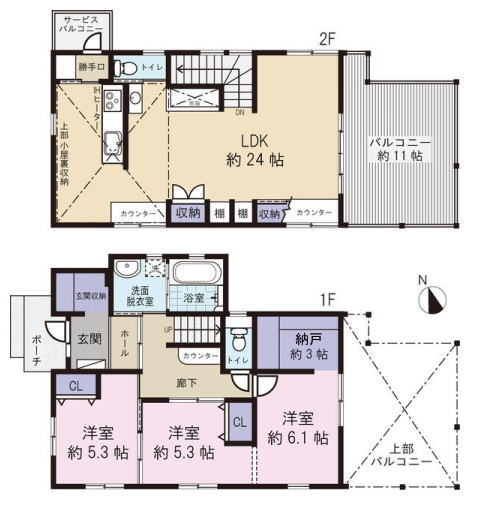 備考:三州木材株式会社施工、駐車場4~5台、公営水道、合併浄化槽、ウッドデッキ、ガレージ、倉庫、カーポート、バルコニー(サービスバルコニー有)、玄関収納、トイレ2か所、吹き抜け、カウンターキッチン、小屋裏収納、建築基準法43条但書許可要