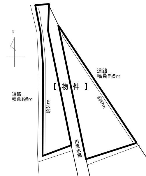 備考:現況畑、地勢:低地、建築条件なし、両面道路、角地、公営水道、個別浄化槽、個別プロパンガス、農地転用許可要、水路占有許可要、建築基準法22条区域、敷地内電柱・支線あり、隣地からの排水管埋設占有あり