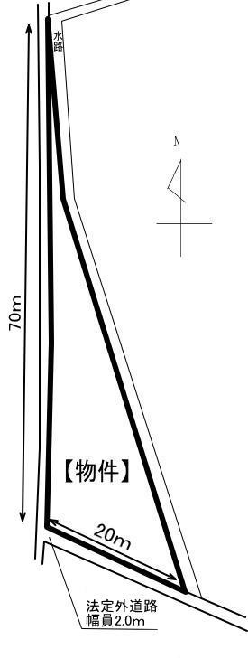 備考:建築条件なし、両面道路角地、南面道路、南・西側ともに法定外道路(赤道)、農転要(許可後引渡し)、水道引き込み要(赤道なので可否は市に要確認)、特別用途地区:大規模集客施設制限地区、居住誘導区域内