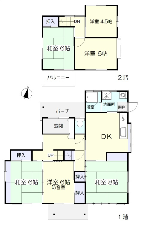 備考:駐車場(軽1台)、公営水道、公共本下水、都市ガス、出窓、バルコニー、1F洋室防音室、区画整理地内、建築基準法22条区域