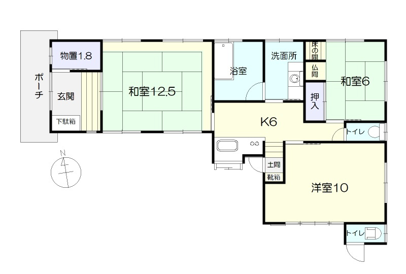 備考:駐車場4台以上、南面道路、公営水道、個別浄化槽、個別プロパンガス、建築基準法22条指定区域、物置1.8帖あり、用途地域:第一種住居地域・近隣商業地域(建蔽率60%・80%)、平屋建て、トイレ2ヶ所(室内・外)