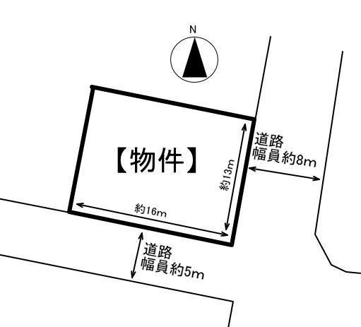 備考:建築条件なし、角地、南面道路、公営水道、公共本下水、個別プロパンガス、建築基準法22条指定区域