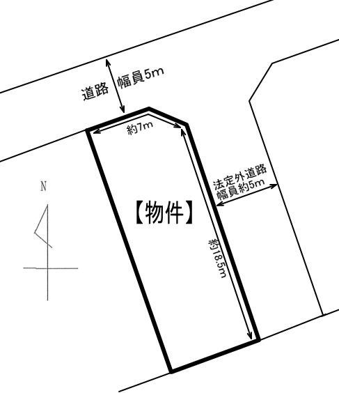 備考:建築条件なし、両面道路、角地、東側法定外道路に接道、公営水道、浄化槽、農地法5条許可要