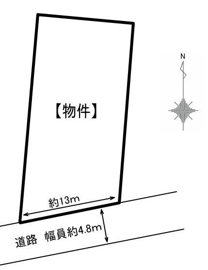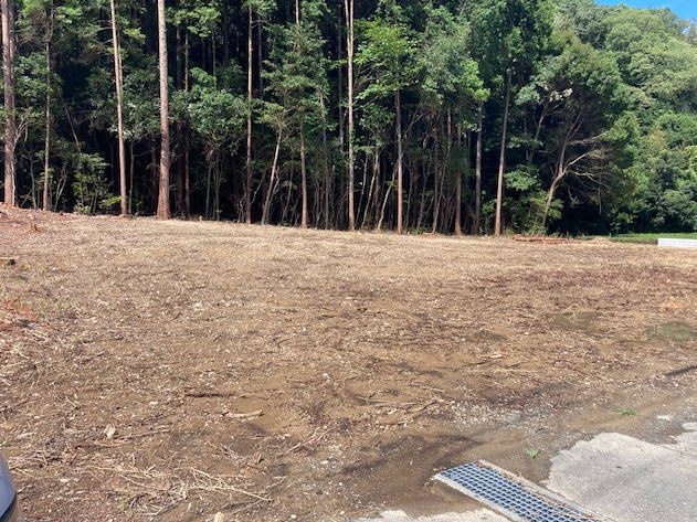 備考:建築条件なし、記載は分筆予定面積、南面道路、公営水道(引込無し)、浄化槽、個別プロパンガス、建築基準法22条指定区域、土砂災害警戒区域(イエロー)、がけ条例