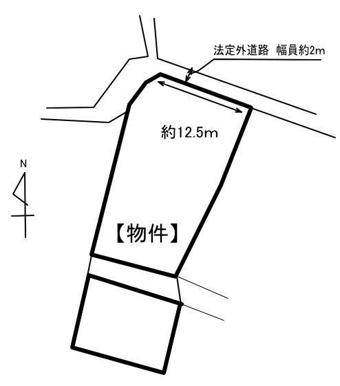 備考:地目宅地・畑、公営水道、プロパンガス、個別浄化槽、駐車場4台以上可(カーポート)、納戸、物置、バルコニー、北側法定外道路に接道、農地転用許可申請要、河川占用許可申請要