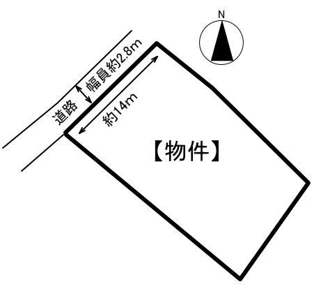 備考:二項道路に接道、駐車場並列2台、公営水道、公共本下水、個別プロパンガス、準防火地域、セットバック要、付属建物有(倉庫)