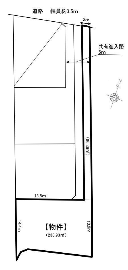 売土地 / 掛川市下垂木 / 土地面積 実測238.93㎡(約72.27坪) 私道86.36㎡/ 地目:田 / 現況:更地 / 引渡し時期:相談