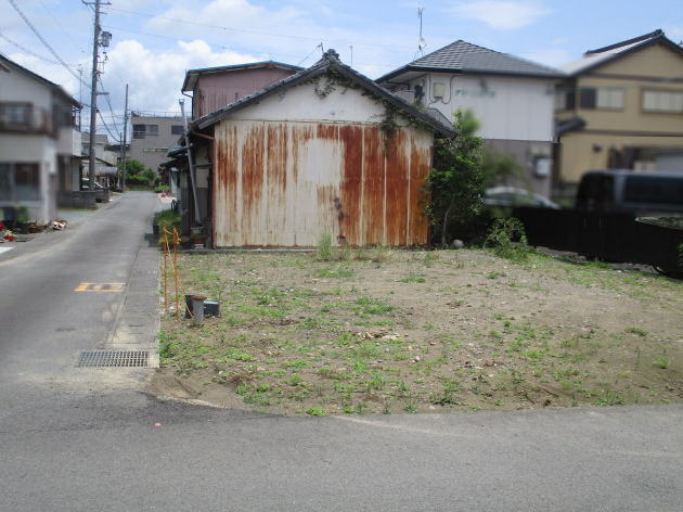 備考:建築条件なし、公営水道(引込有)、都市ガス(引込有)、浄化槽、解体更地渡し、角地