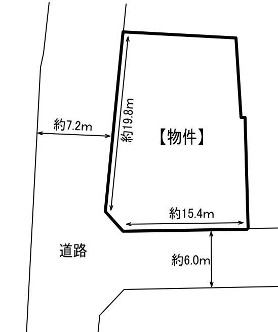 備考:南西角地、公営水道、プロパンガス、個別浄化槽(設置の必要あり)、建物未登記